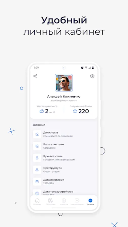 The mobile application "Klever Major" was developed for professional training of employees of the company "Major Logistics", as well as for internal communication, exchange of expertise and management of personal career development.