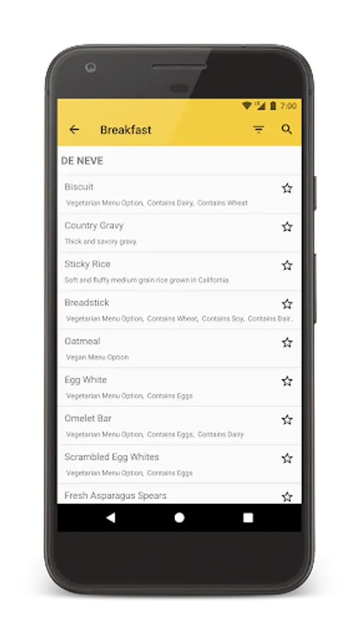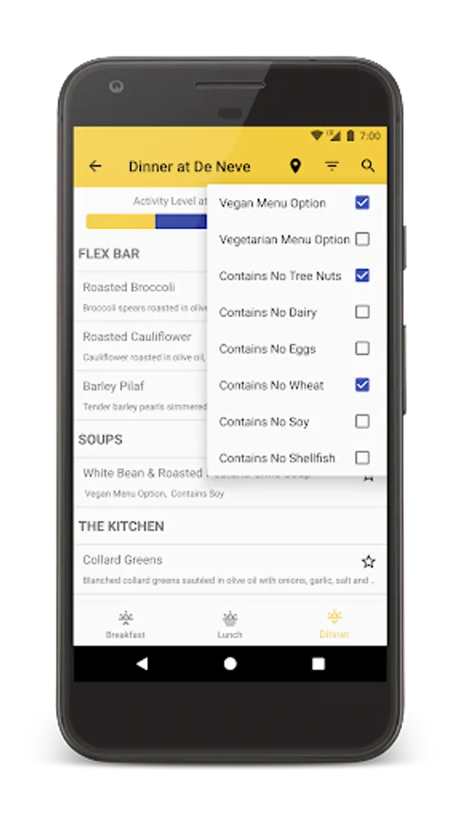 - Filter items by what you do and don't eat (e.g. vegetarian, vegan, dairy-free, etc.)