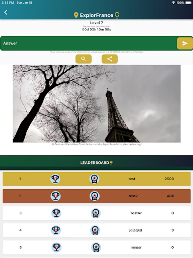 ExplorFrance is a geographical treasure hunt game that lets you discover the hidden wonders of France. It gives you the possibility to navigate through the different regions of France using satellite views and pedestrian views, and to guess the location of the different landmarks.