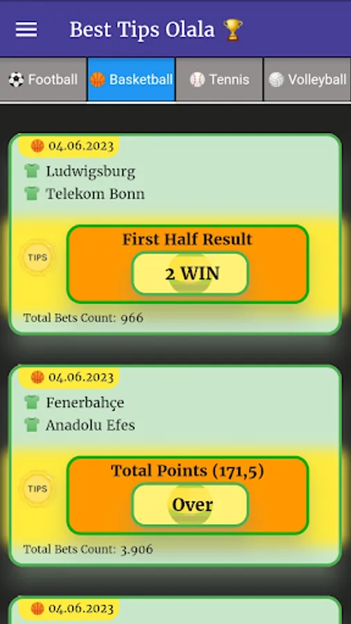 Betting tips for Football, Basketball, Tennis and Volleyball.