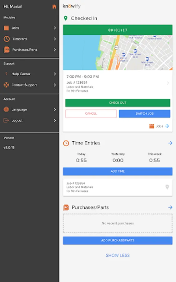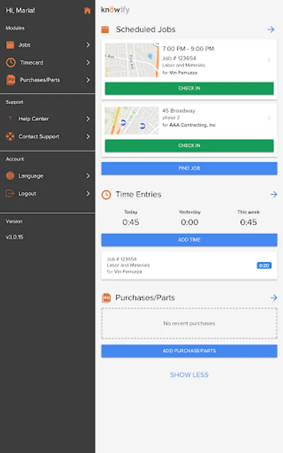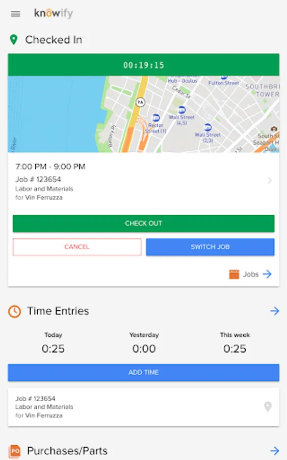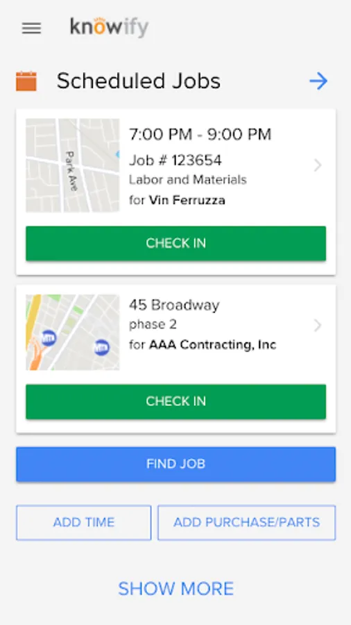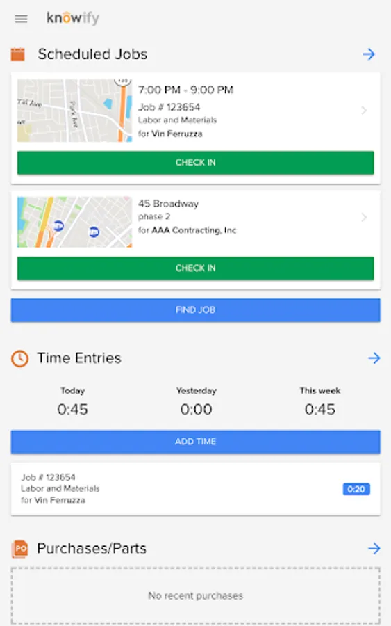 Knowify’s mobile app automates the field side of your contracting business, with simple time clocking, field purchasing and reimbursement tools, work orders, photo sharing, and more. Syncs with Knowify in real-time. Requires Knowify subscription.