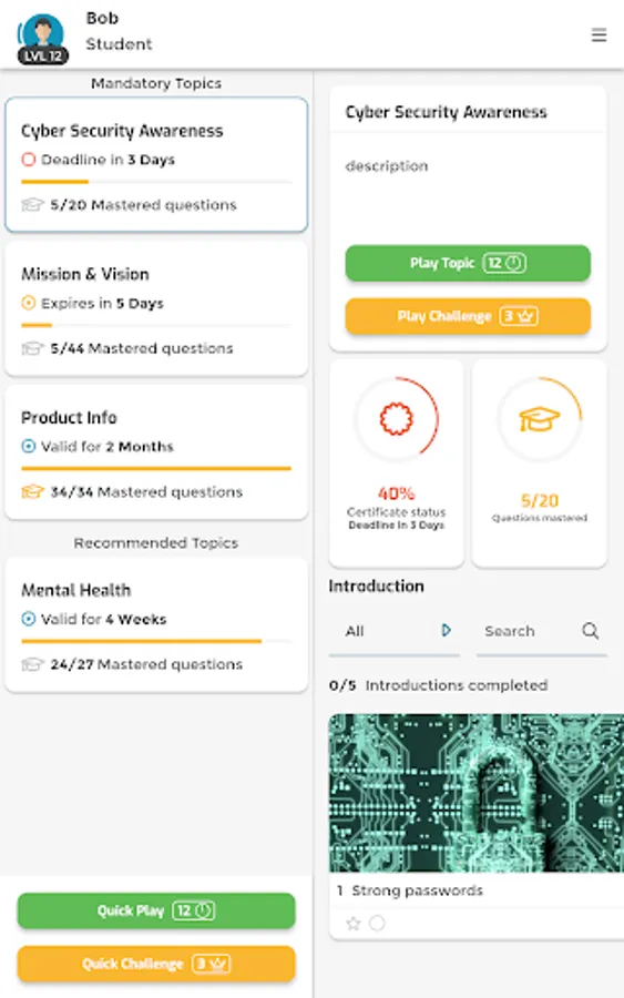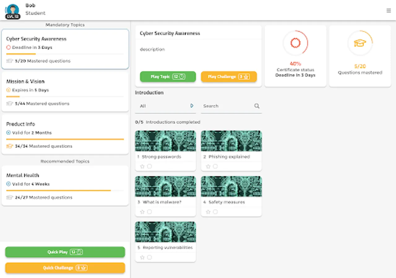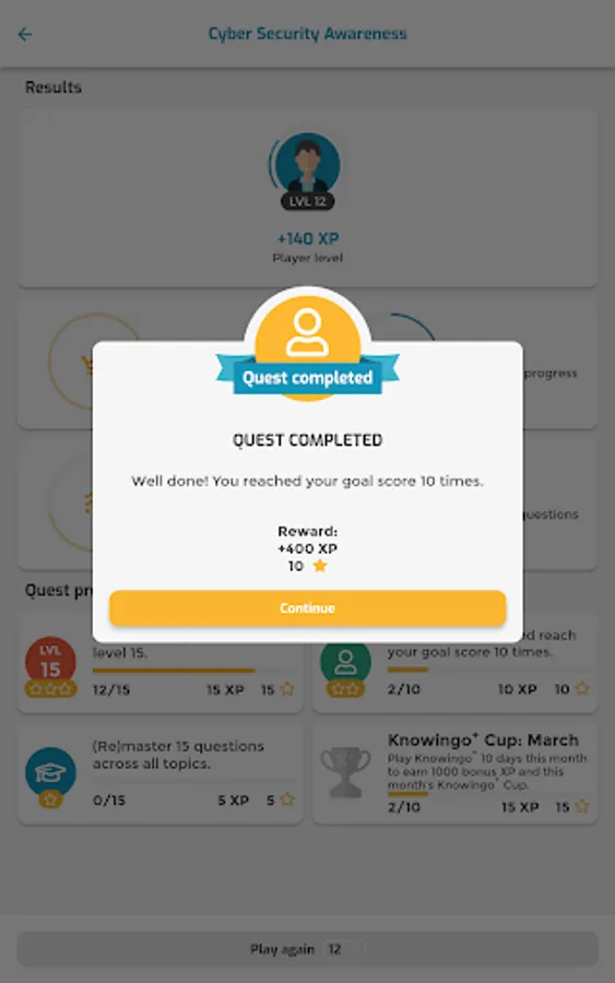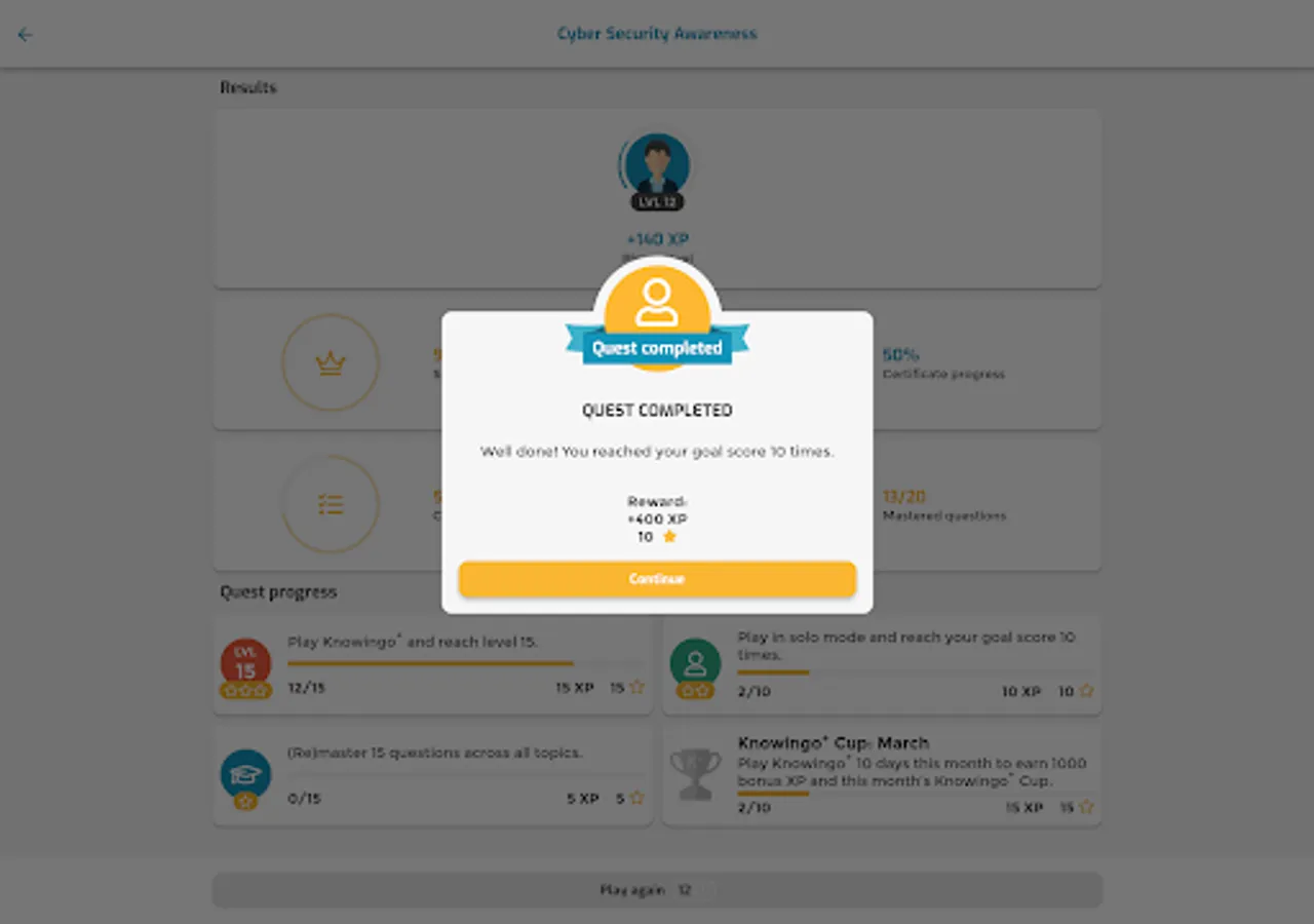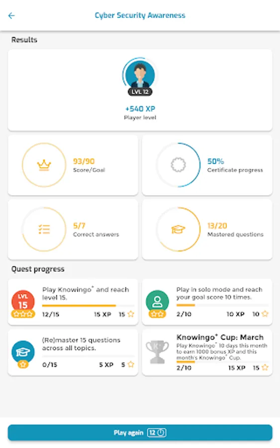 Knowingo is the app that makes learning fun! Become the best at your job and test your knowledge with trivia-like quizzes in just a few minutes per day. All you have to do is answer questions quickly and accurately and read through the study material to gain experience, level-up your profile and earn new titles. Knowingo will provide you with the right daily challenges to help you improve your knowledge and earn more rewards. Mastering questions will gain you certificates that guarantee your mastery in the respective topics.