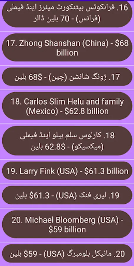 Whether you're an aspiring entrepreneur, a business student, or just a curious individual, the Billionaire 20 app is an invaluable resource for anyone interested in the world of wealth creation. Download now and start exploring the lives and fortunes of the world's most successful billionaires!