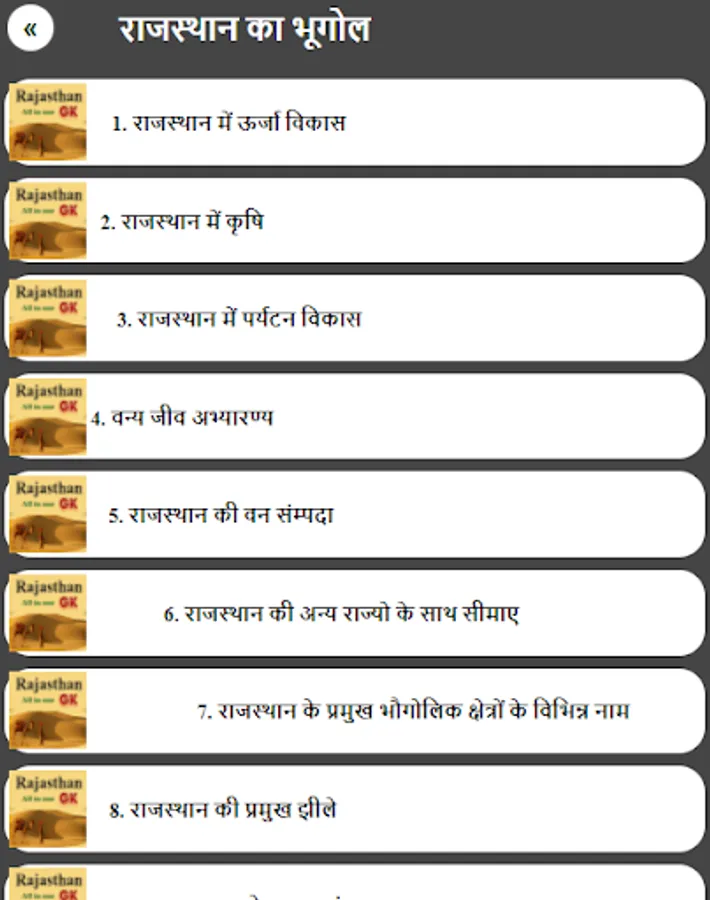 राजस्थान सामान्य ज्ञान हिंदी भाषा में यहाँ दिया गया है, जोकि आपको एक दिवसीय परीक्षाओं की तैयारी में सहायक रहेगा।
