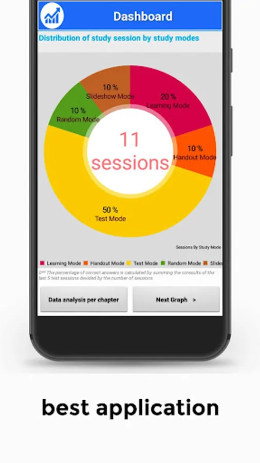 - Get the most advanced data analytics features that analyses your study session by study mode, scores, time spent…etc.