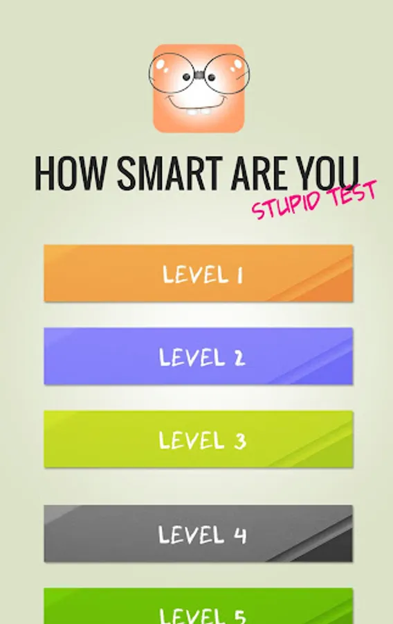 Graduate from Stupid level to Genius level as you use test your brain to answer the quiz! Master the quiz and improve your IQ, then laugh as your friends and family try these seemingly simple test!