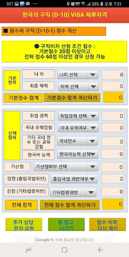 Both general job search visas and visas for job hunting are operated on a score basis.