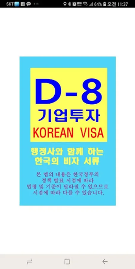 This is a visa that allows you to invest in a Korean company, a corporate company, a private company, a venture company, a start-up company, etc., and live for a long time as an investor or for the purpose of managing the company.