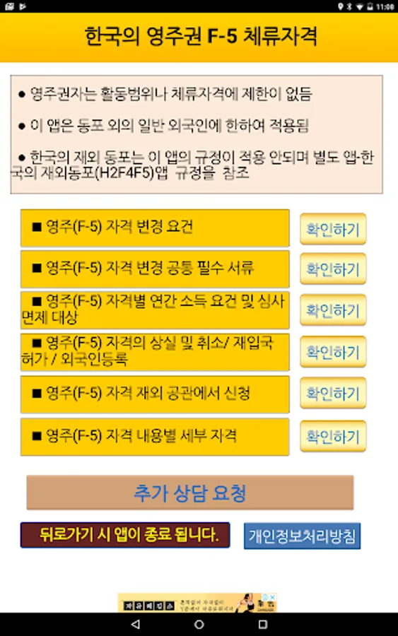 For Koreans overseas, please refer to the contents of the "Korea Koreans Overseas" related app, not this app regulation.