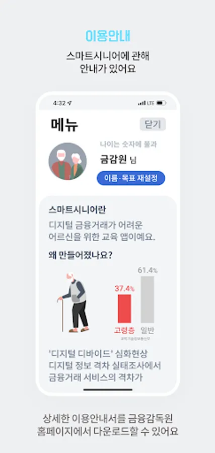 - It is an app made in collaboration between Korea Development Bank and the Financial Supervisory Service, and above all, it is a non-commercial app that only considers the learning of the elderly.