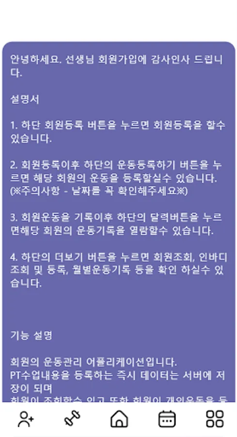 If you write an exercise program for the member to see after the PT class with the member, it will be automatically shared with the member and you can search the exercise program afterwards.