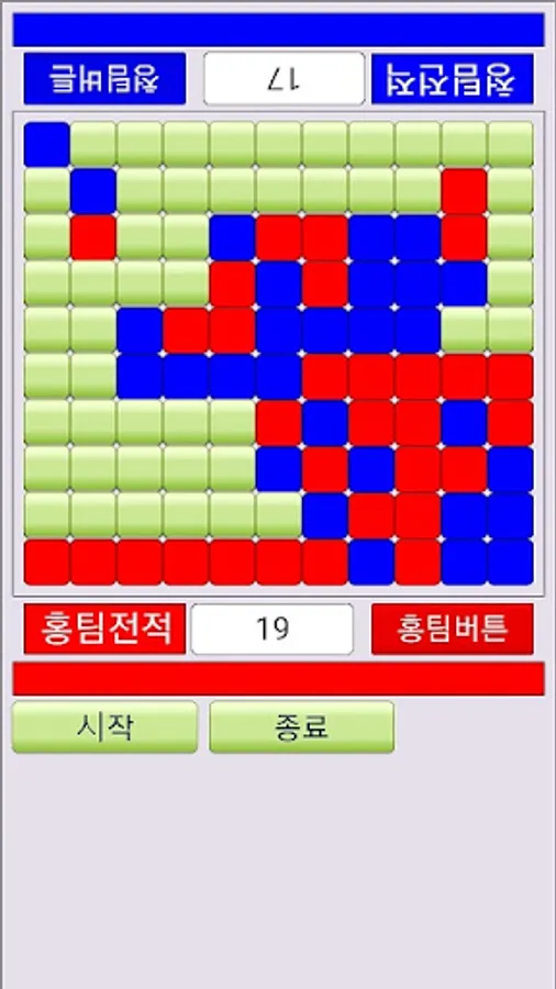 The blue and red teams take turns occupying any land, and it is a fun game in which the team continues to eat land when their own land comes up.