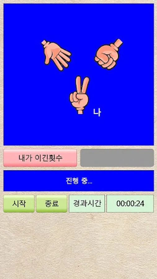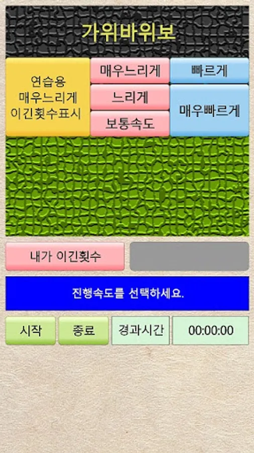 The three of us play rock-paper-scissors speedily for 1 minute. At this time, it is a speed game that requires agility to guess the number of wins. The general rule applies, except that if all three have the same hand, I win. There are 5 stages of progress, from very slow to very fast, and if you click on practice, you can check each case where you win.