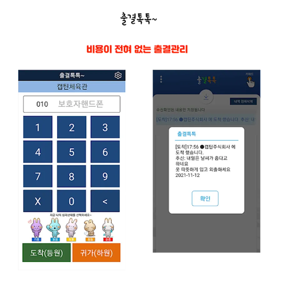 2. Send a notice to the parents of the freshman/trainee to download and install the "attendance talk talk" app from the Google Play Store for arrival/return notification