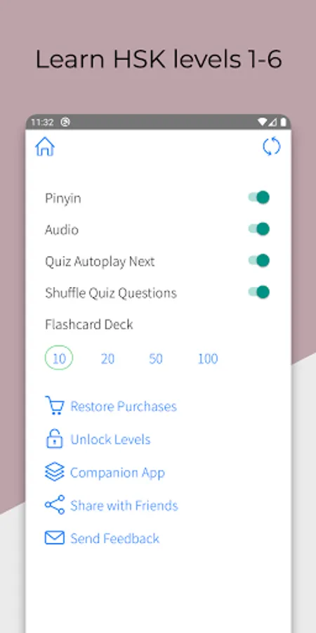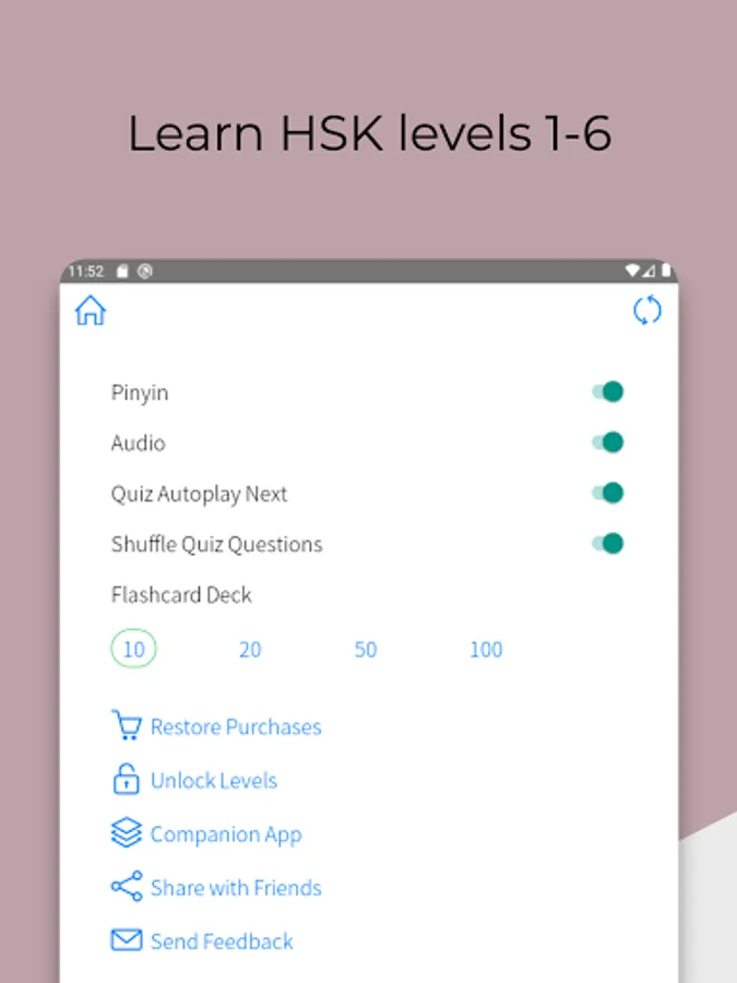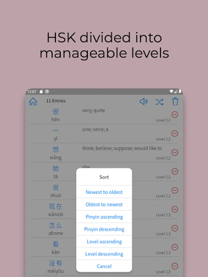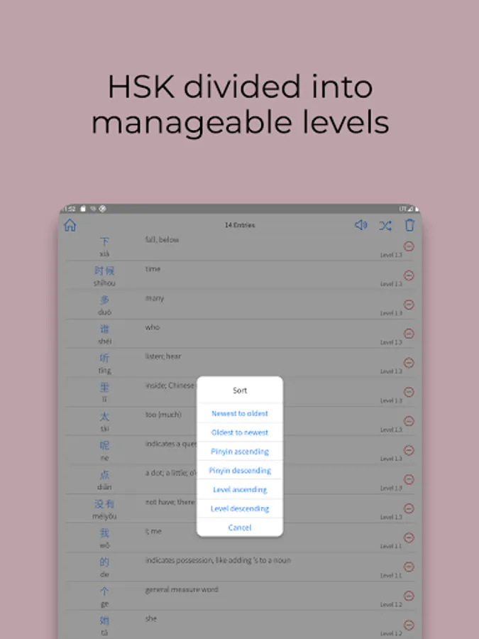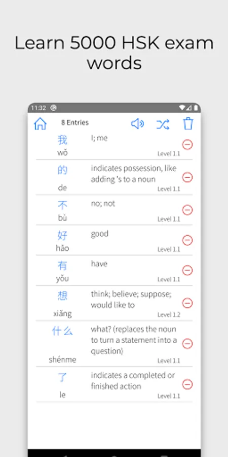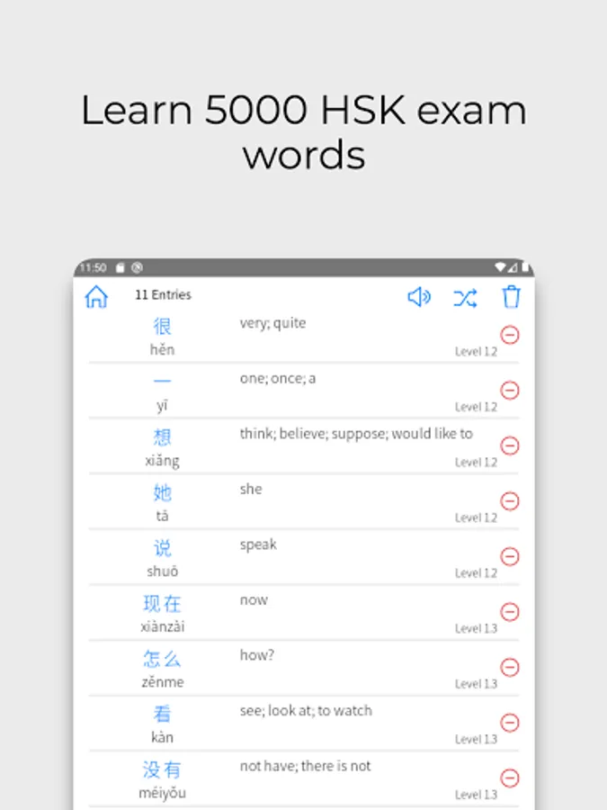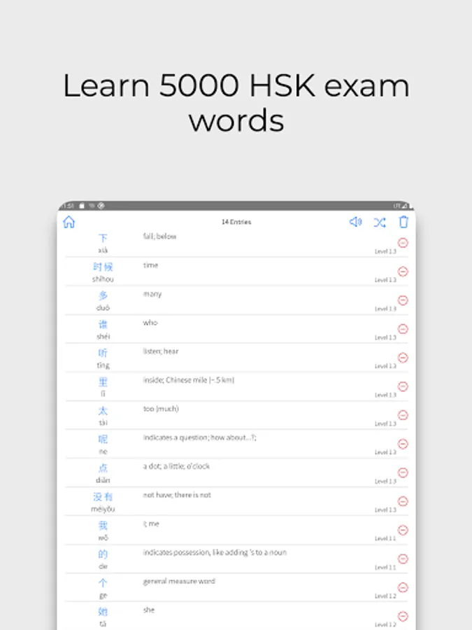 * Master 5000 Chinese words. Based on HSK Levels 1-6.