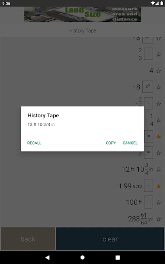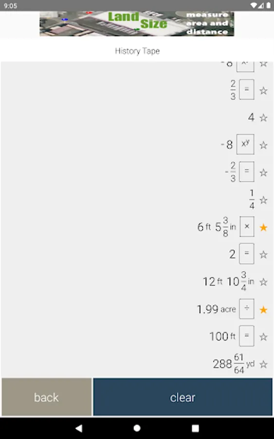 **8. History Tape with Easy Recall:** Never lose track of your calculations again. The app's History Tape saves your past calculations for easy recall. Quickly refer back to previous results, analyze your calculations, and make adjustments when needed. The starred memory function allows you to save important calculations for future reference.