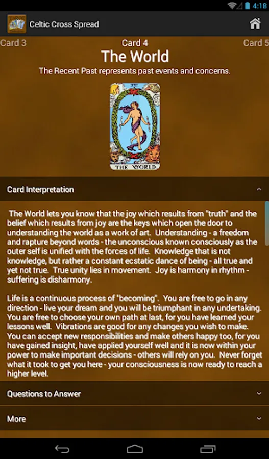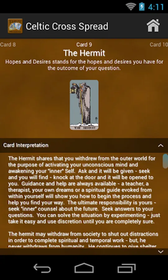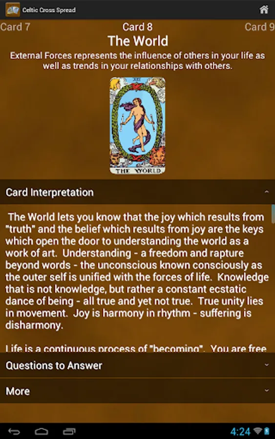 TAROT cards and their divinations provide a "picture" of the energy surrounding your life - a picture which views your situation from different perspectives - helping you to "see" things in a new light.