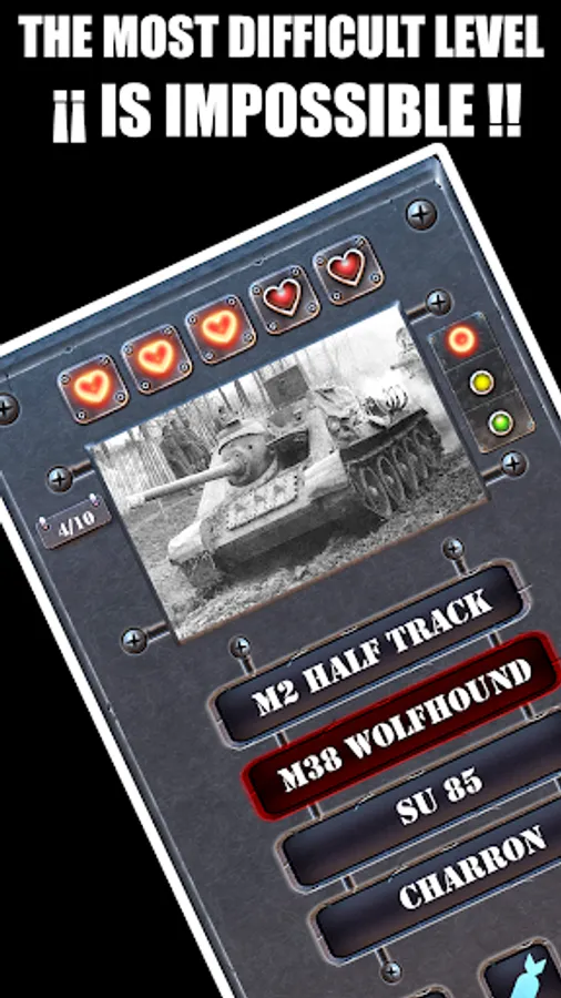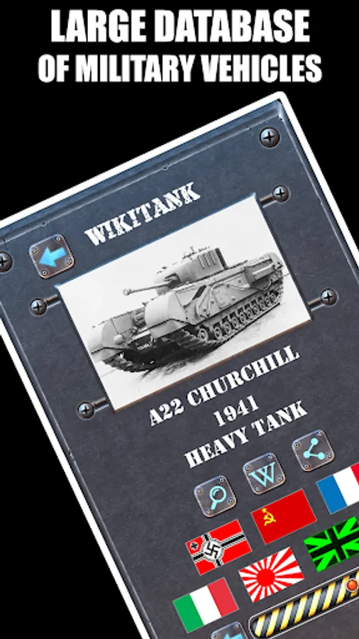 🔸 In addition, Tank Quiz offers the "Tankpedia" button, where you can find a file card, a full screen image and a direct link to Wikipedia of the selected tank or military car.