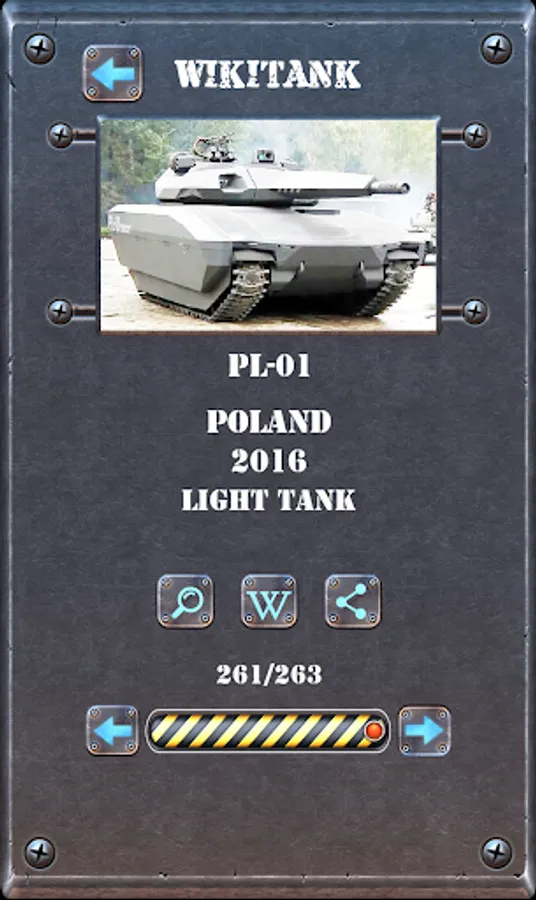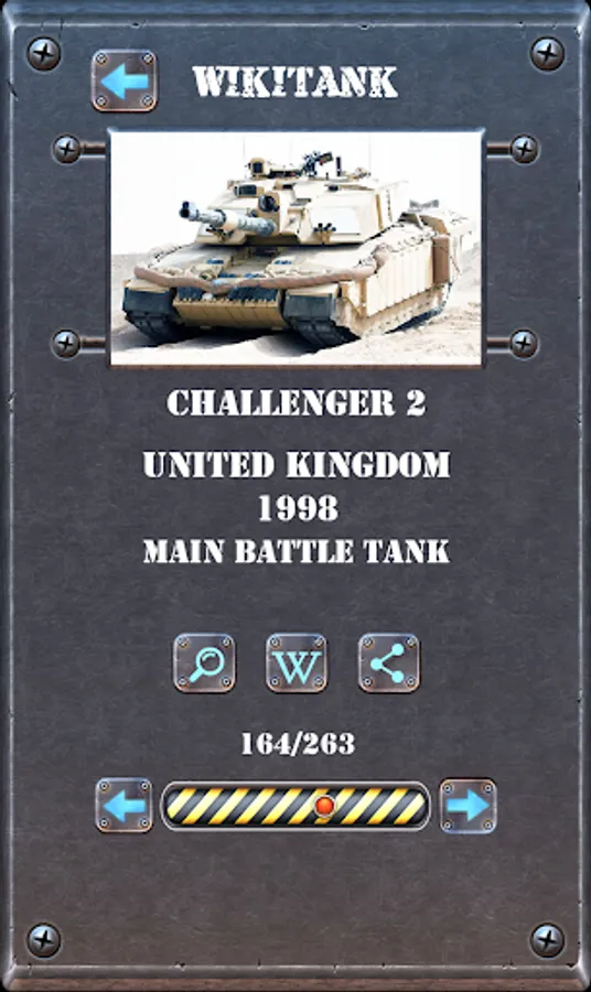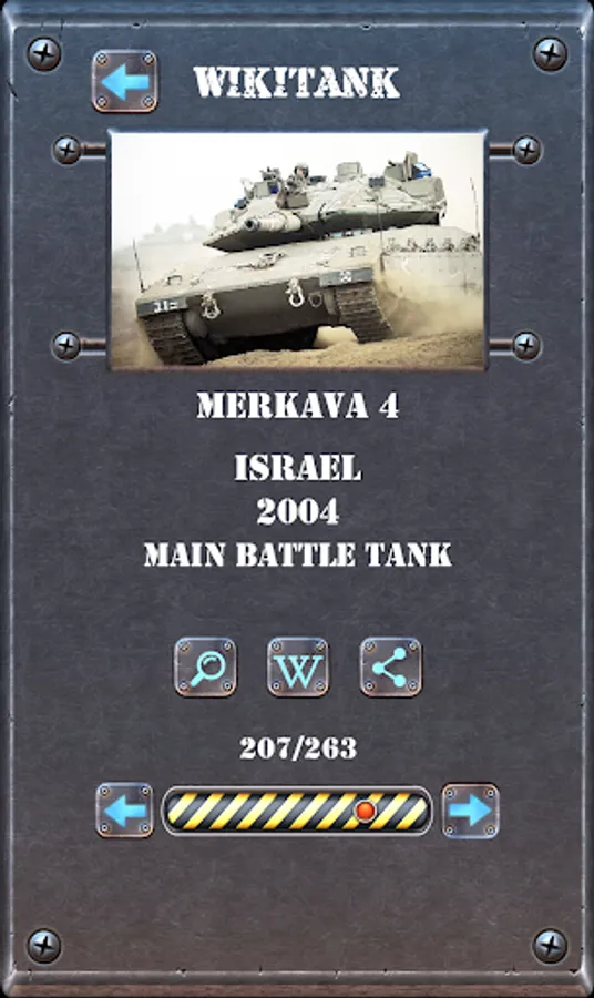 🔸 In addition, Tank Quiz 2 offers the "Tankpedia" button, where you can find a file card, a full screen image and a direct link to Wikipedia of the selected tank or military car.