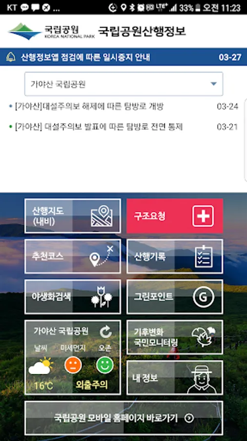 The hiking information app helps national park visitors use the national park more conveniently and safely.