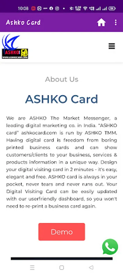 We are ASHKO The Market Messenger, a leading digital marketing co. in India. “ASHKO card” ashkocard.com is run by ASHKO TMM. Having digital card is freedom from boring printed business cards and can show customers/clients to your business, services & products information in a unique way. Design your digital visiting card in 2 minutes - it's easy, elegant and free. ASHKO card is always in your pocket, never tears and never runs out. Your Digital Visiting Card can be easily updated with our userfriendly dashboard, so you won't need to re-print a business card again.