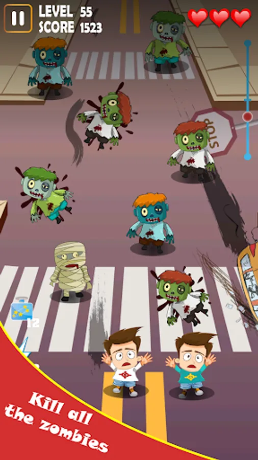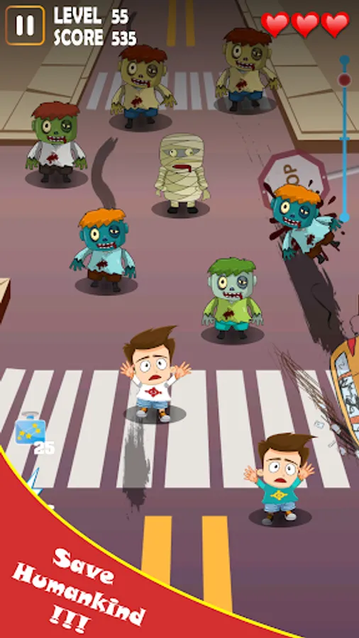 - 3 Power to assist you to kill zombies: Stun, Power and Bomb.