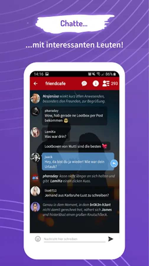 .Over 330,000 monthly active members of our chat community are looking forward to meeting you. Meet new people now with whom you can chat and play to your heart's content. Maybe you too will find one of your favorite people in the Knuddels chat app.
