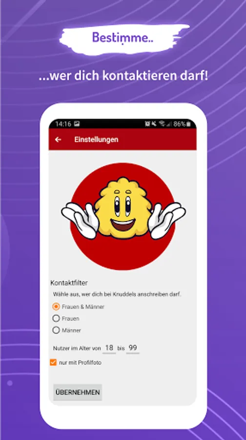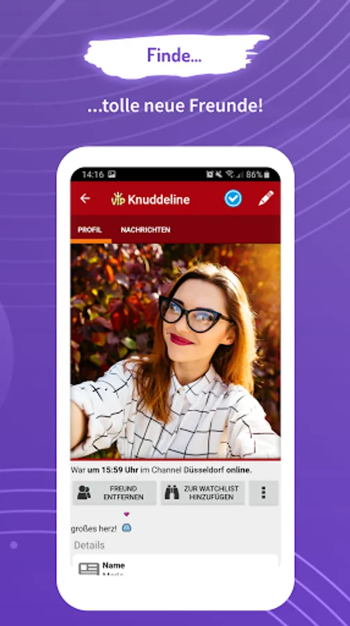 With the Knuddels Messenger & Chat app, you get the complete package. In our chat rooms you can chat with nice people, have an exciting flirt or find your best friend.