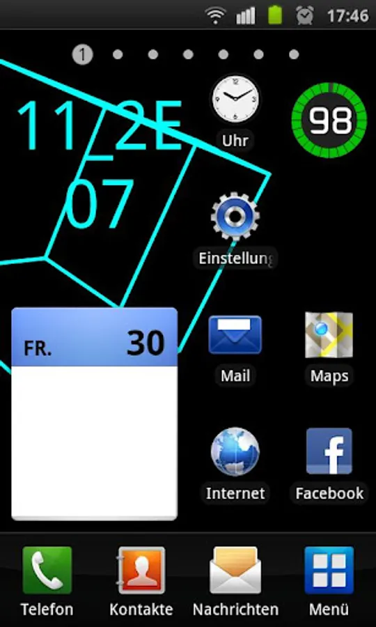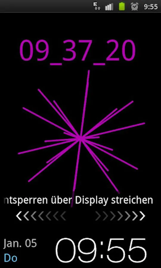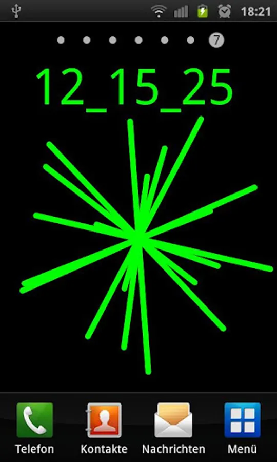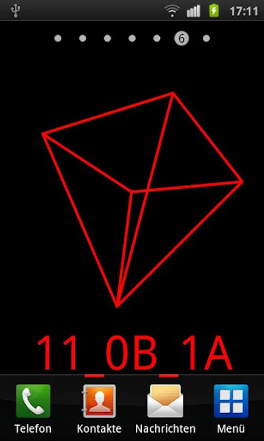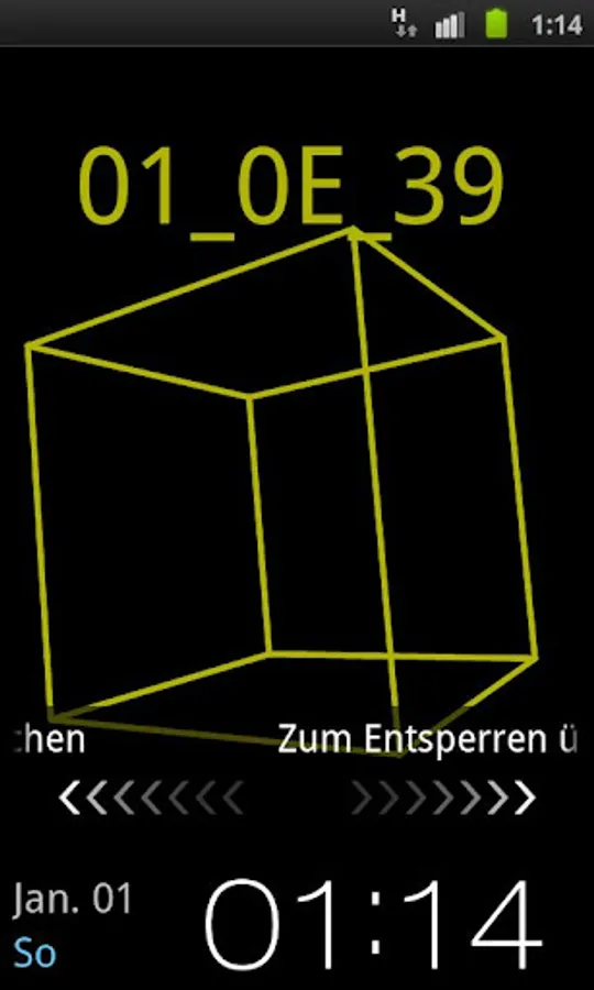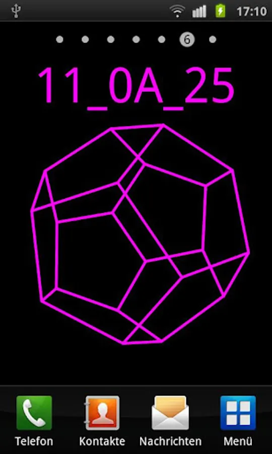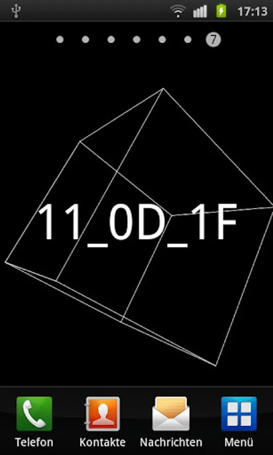 This is a fancy LiveWallpaper featuring the actual time, hours, minutes and seconds encoded in the hexadecimal number system (number base 16 http://en.wikipedia.org/wiki/Hexadecimal). Additionally, one of serveral possible wireframe objects is rotating and optionally moving over the screen.