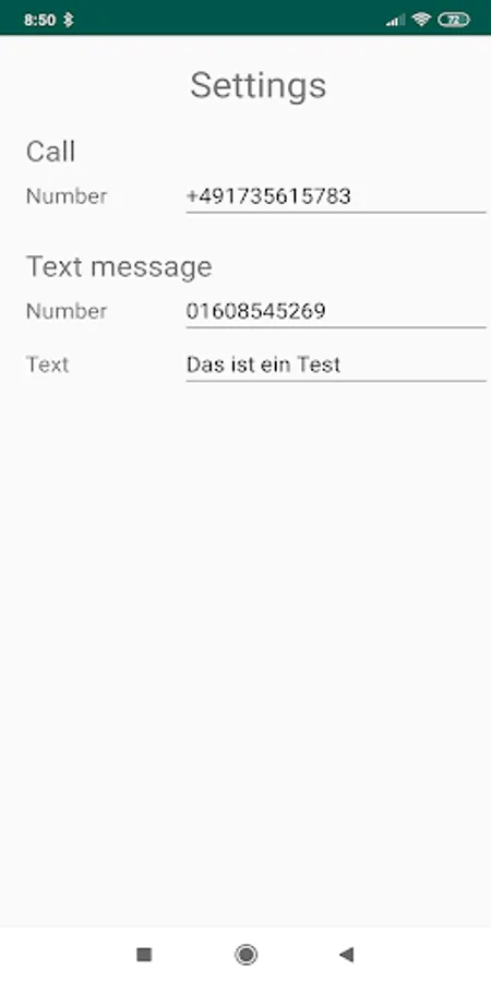 The app offers only the basic function to call a number or to send a text message in case of an emergency or other event. The phone number will be set in the app settings.