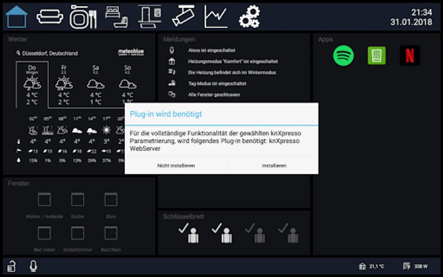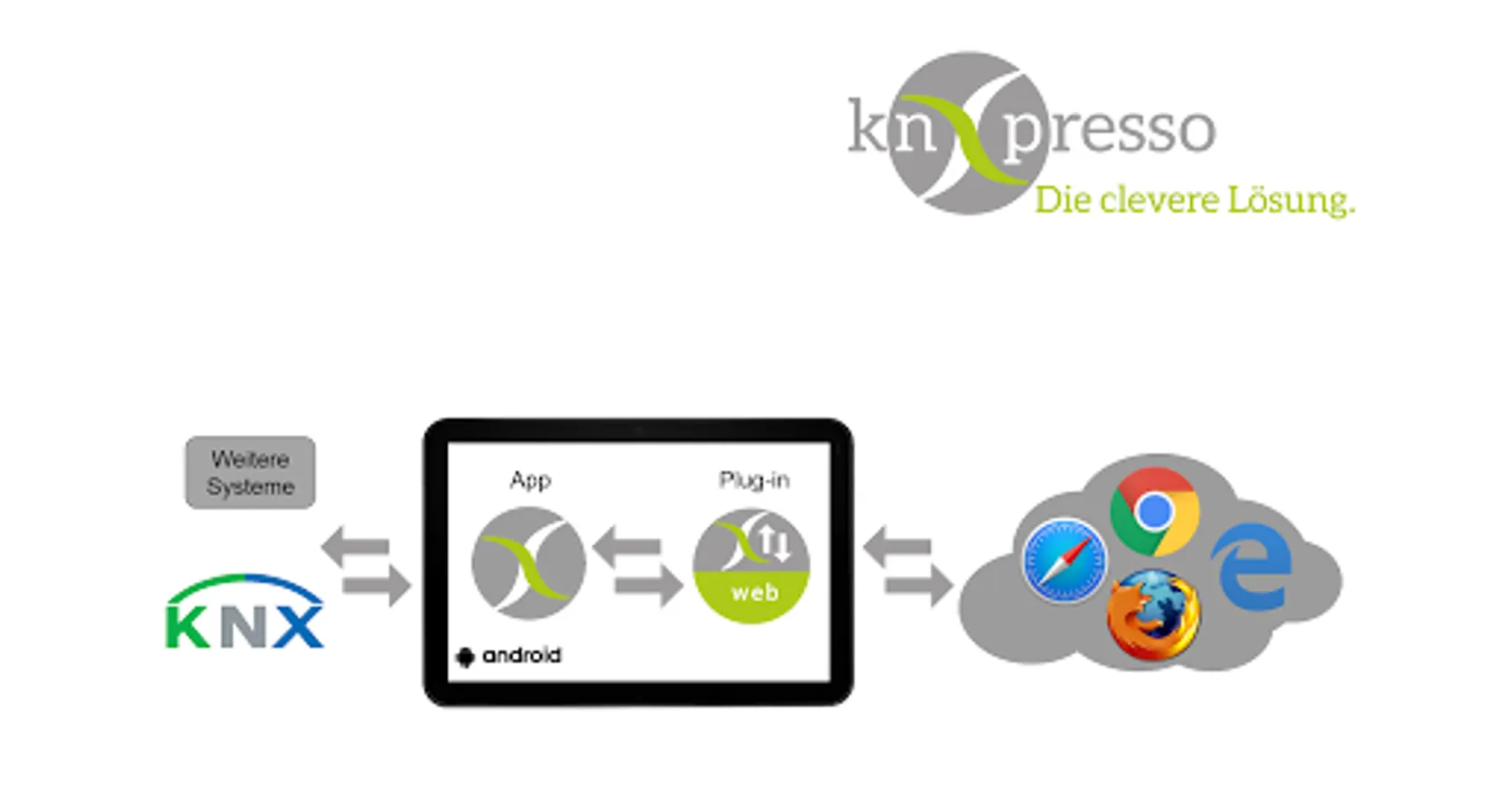 Thus, an operation of the existing installation is also immediately possible on a PC under Windows, the iPad or iPhone on iOS or other Android devices without any installation or configuration work.