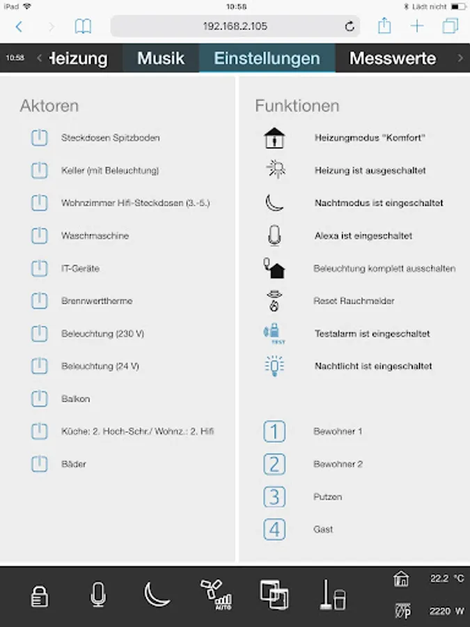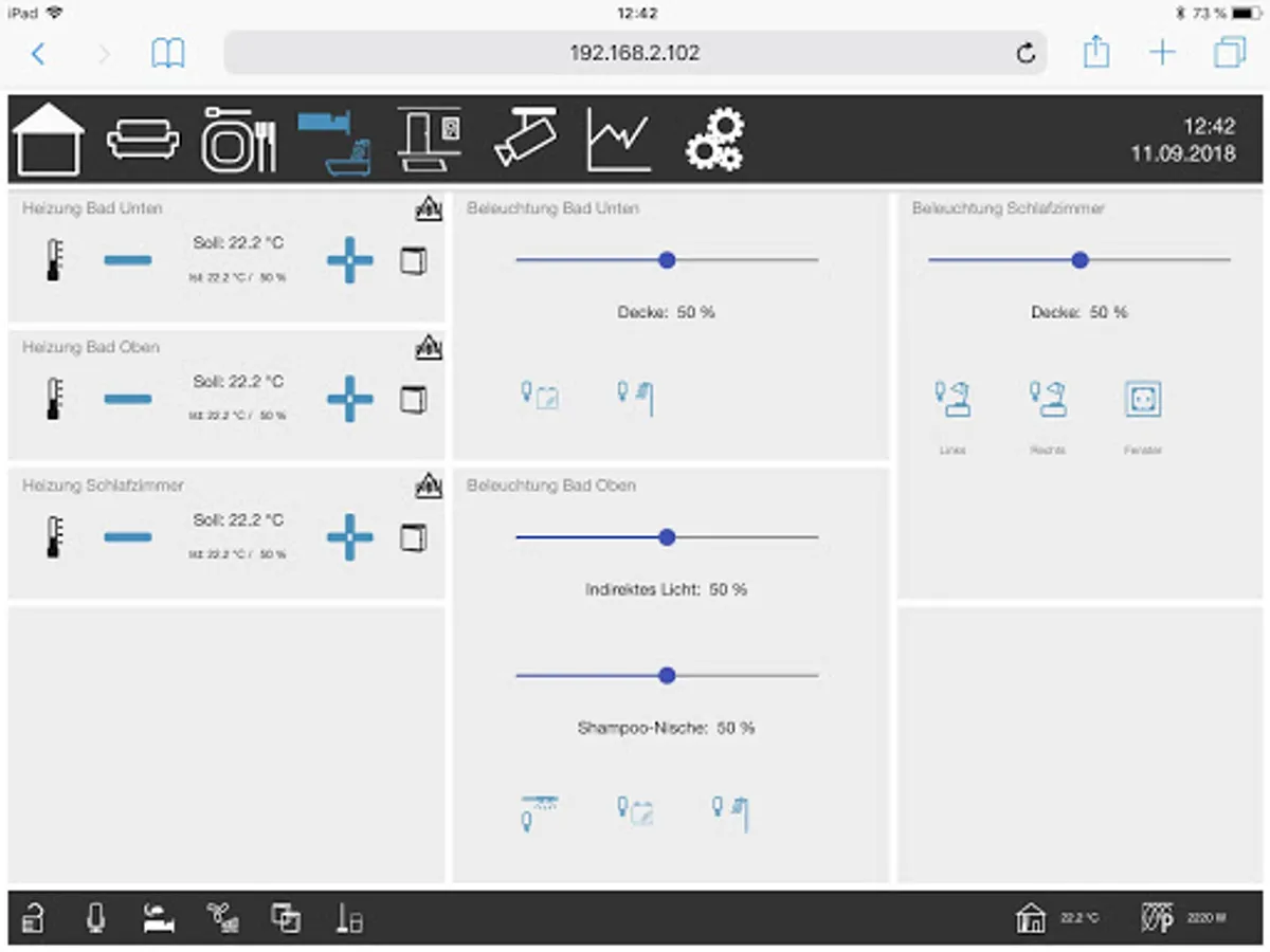 The web server offers a remarkable extension of the knXpresso functionality. The visualization of a KNX system, which is installed on an Android tablet with knXpresso, can be displayed and operated by released pages of the project sharing with the most popular browsers, under the most diverse operating systems. It is possible to release individual pages of a project up to the entire visualization.