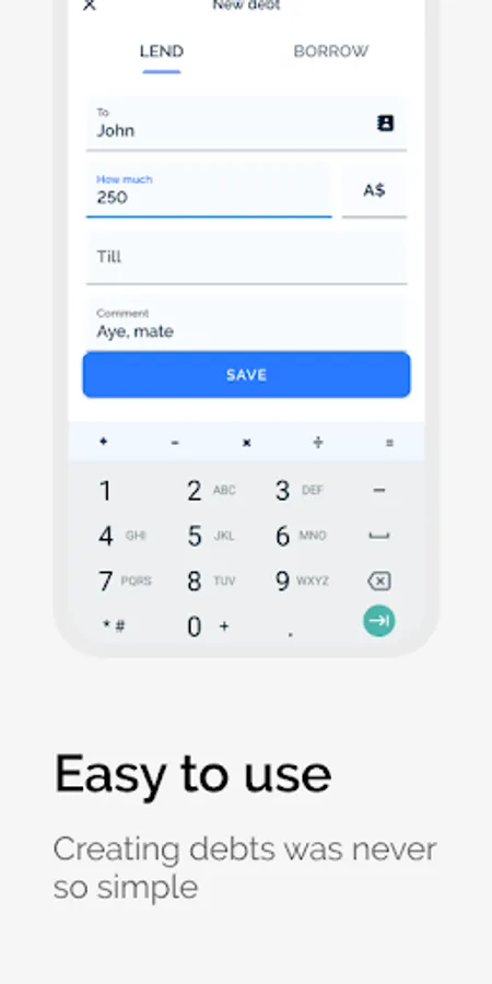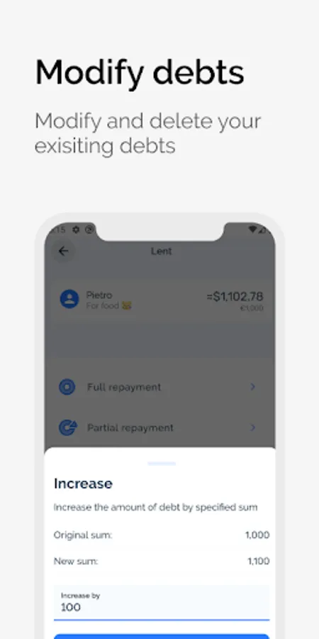 * Use builtin calculator to always stay in app when creating your debt