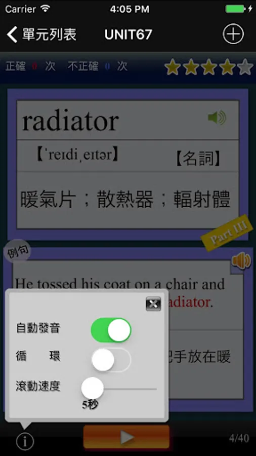 ・單詞卡片自動切換,自動發音功能