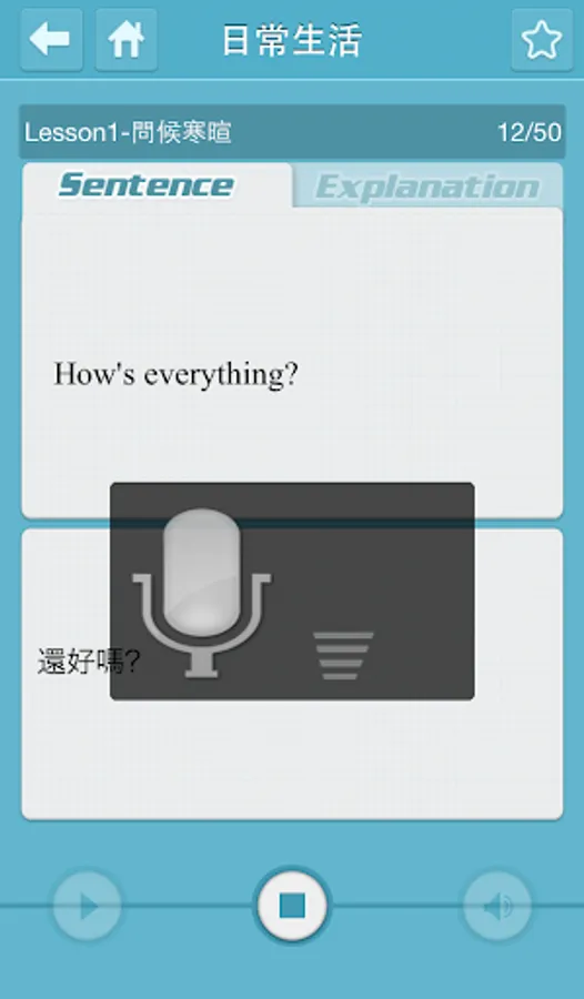 ・在學習完每句之後,可以點擊錄音按鈕,記錄下自己的發音,然後同例文聲音進行對比,能有效發現並糾正問題。