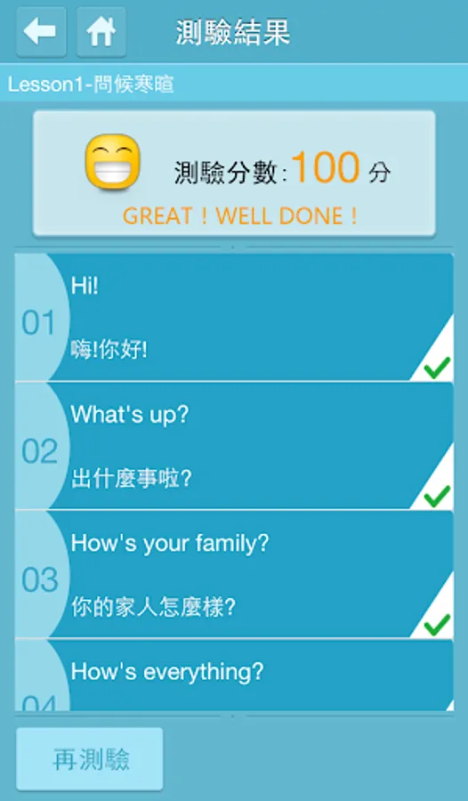 ・同時,在學習模式下,本軟體會自動記錄學習進度,下一次進入學習卡片時,會直接轉到未學習的新句子,提高學習效率。