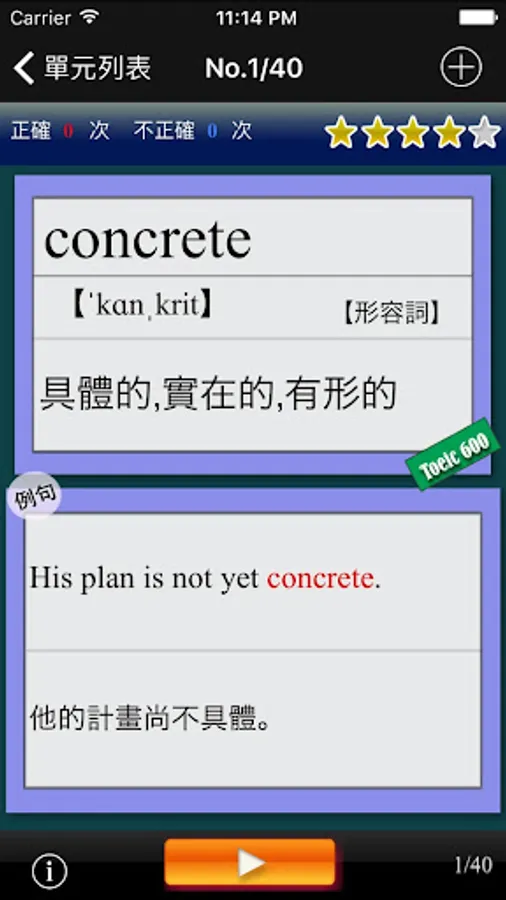・未測驗的單詞:一次都還沒有測驗過的單詞列表;