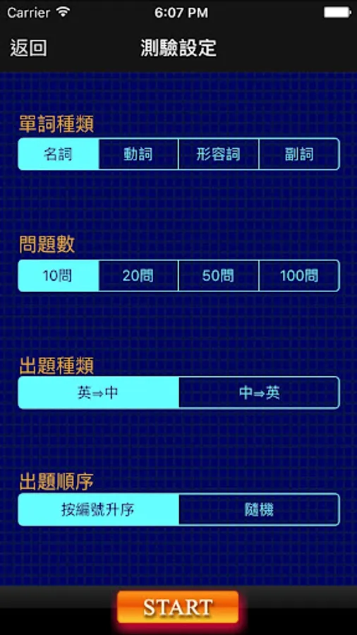 出題順序:可設定成按單詞編號順序出題,也可以選擇隨機順序出題;