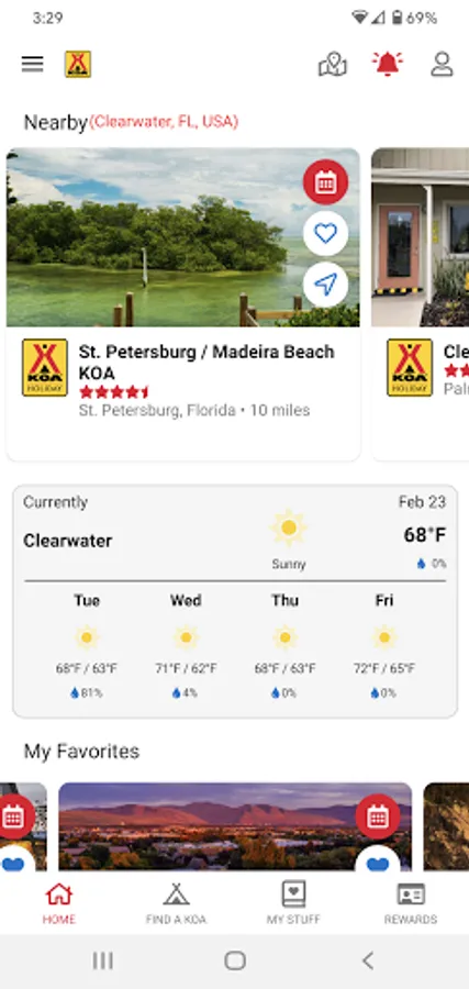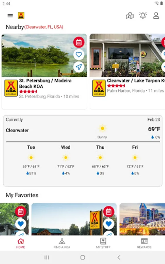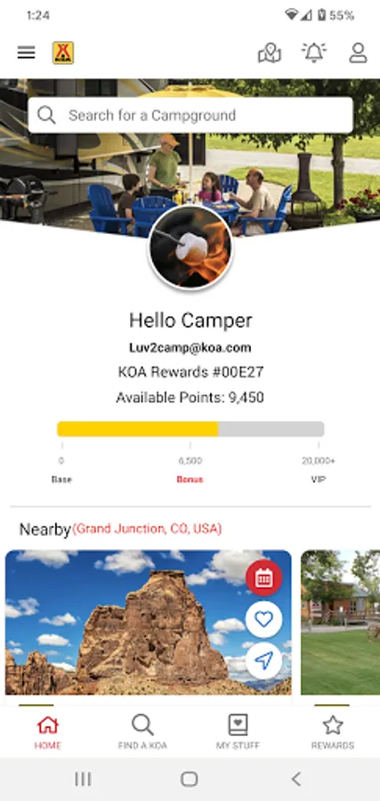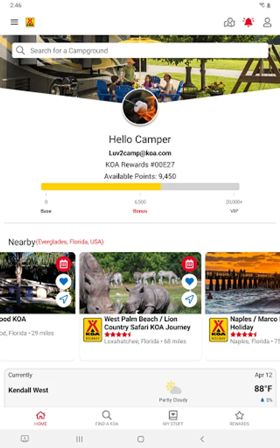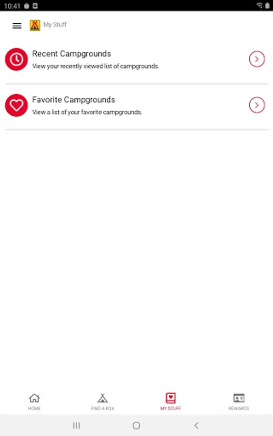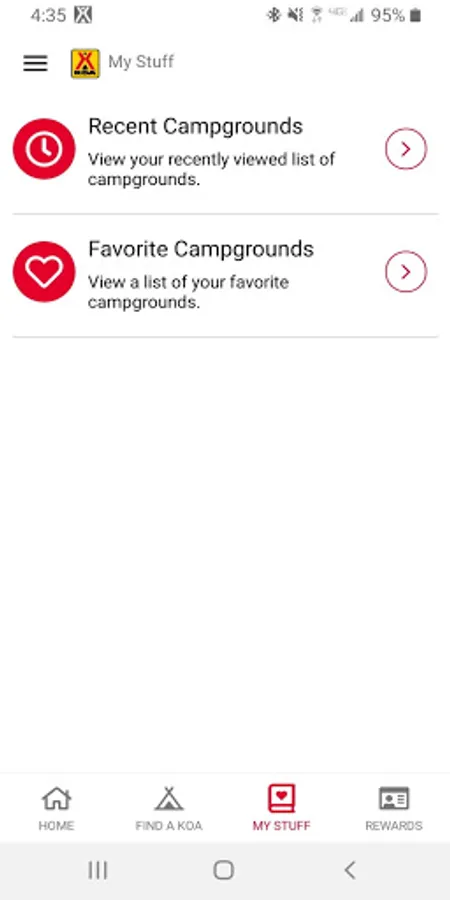 • Earn rewards: If you're a KOA Rewards camper, you can track your points, rewards, and more in the app.