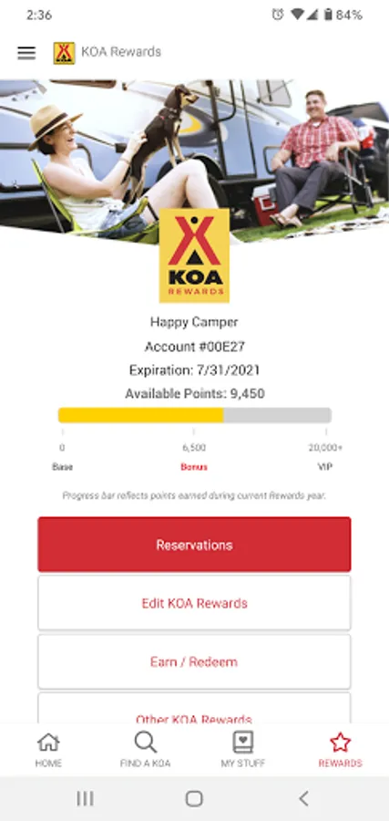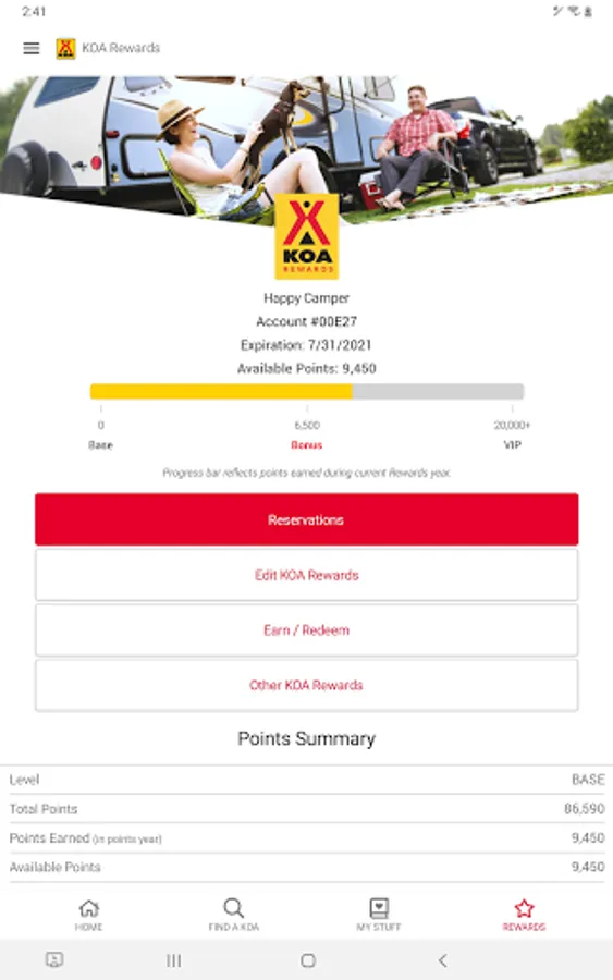 Whether you're a seasoned camper or just starting out, our KOA camping app makes it easy to find and book your next trip. With a KOA account, you can manage your camping preferences, save your favorite campgrounds, and see your upcoming and past reservation history all in one place. And if you're a KOA Rewards camper, you can also track your points, rewards, and more.