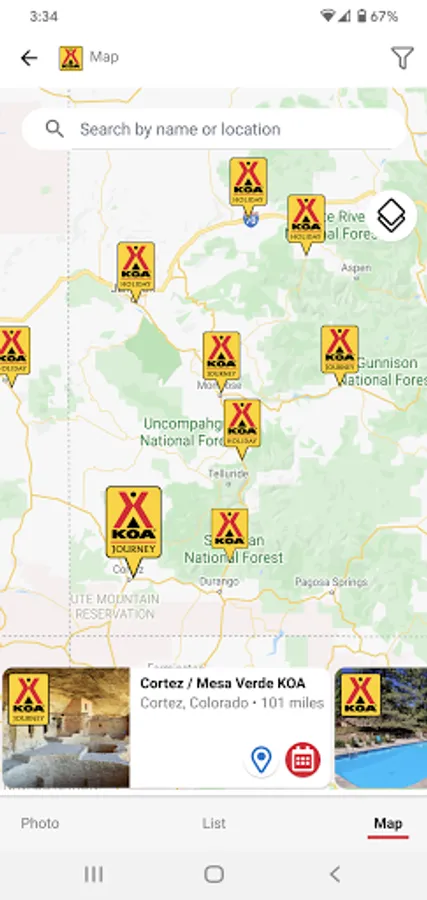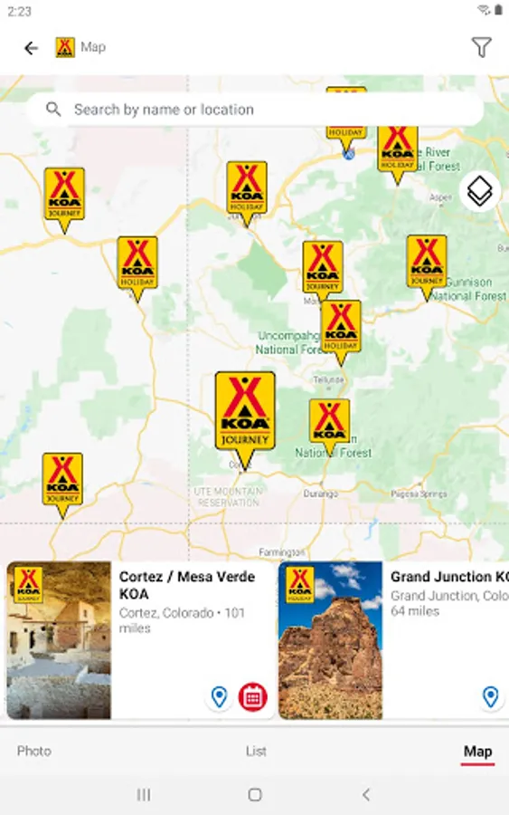 • Find KOA campgrounds: With our easy-to-use search function and filtering capabilities, you can find the perfect KOA campground for your next outdoor experience, whether you're looking for RV parks, tent camping, cabin camping, or glamping. You can search by city, state, campground name, or even nearby attractions.