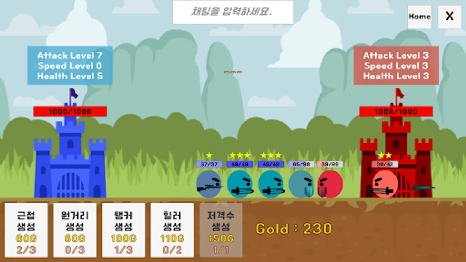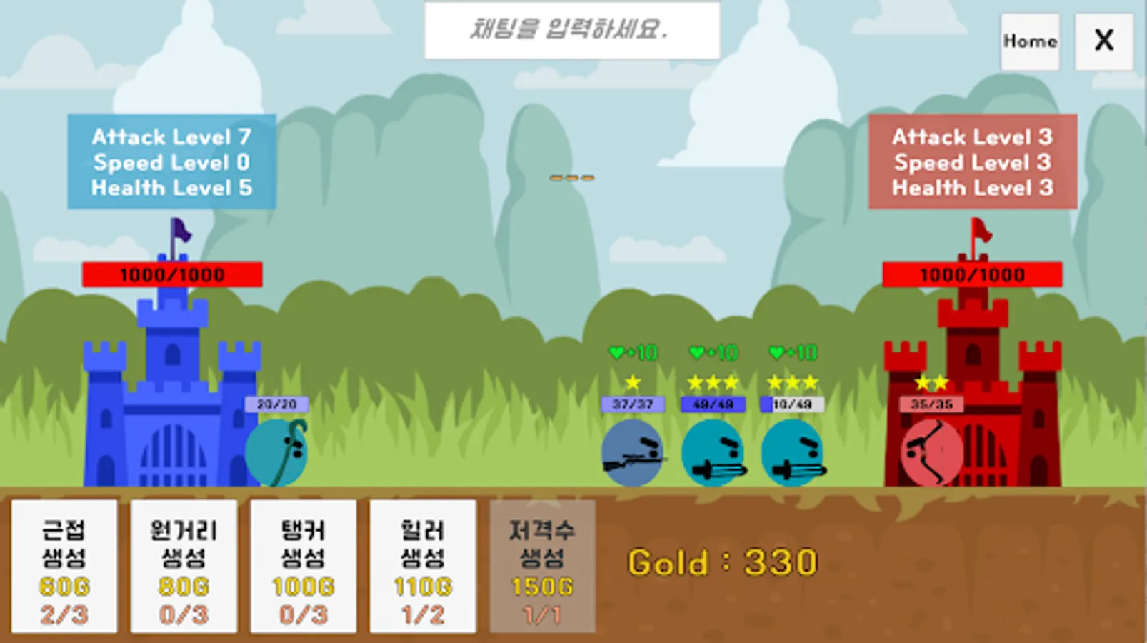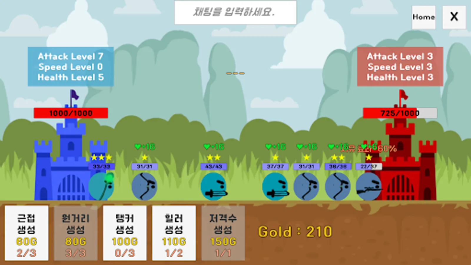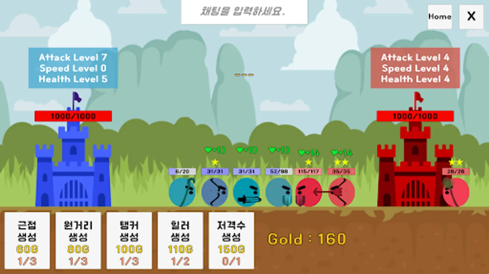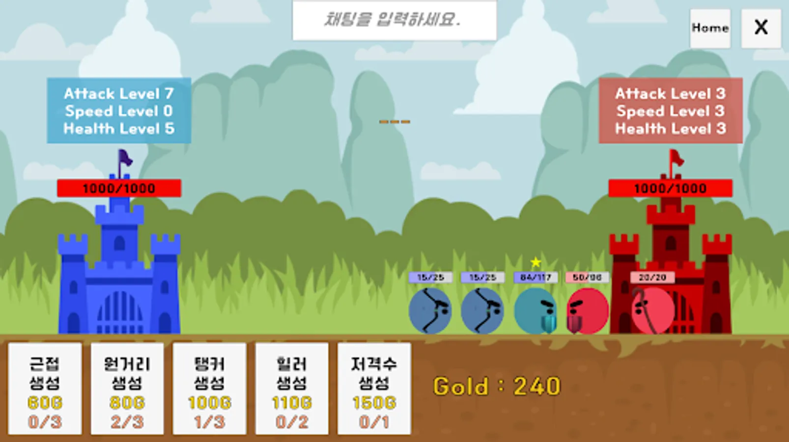 각 유닛들을 활용해 상대방 성을 먼저 부수세요.