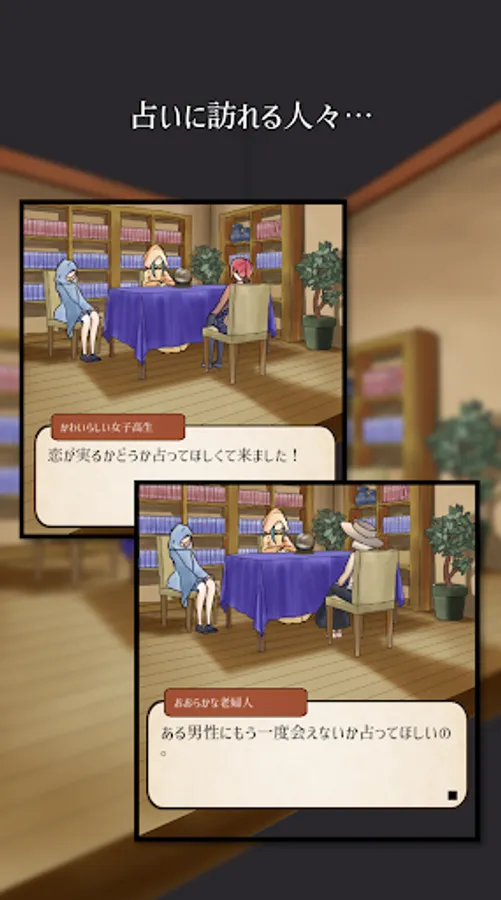・ You can browse short stories of people who visit the fortune-telling hall.
