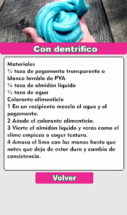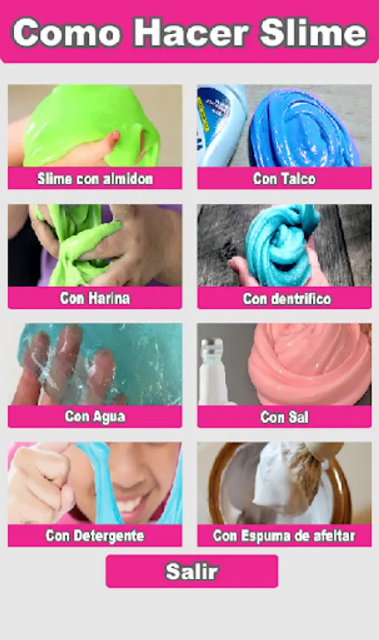 How to make Eslain is an application that collects the best and easiest recipes so you can make your own Slime of water, without borax, with everyday elements such as detergent, liquid soap, shaving foam, flour, starch and glue among others.