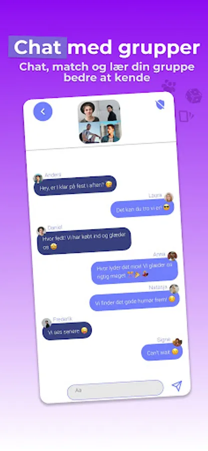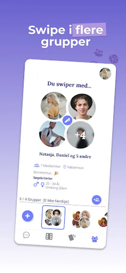 Once you've found a group that matches your wishes, you can send messages in our group chat and meet new people out in the real world. With a single swipe, you and your friends can easily and quickly ensure a pleasant evening and get to know new people.