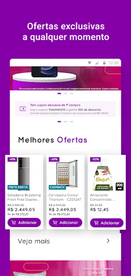 Find your favorite brands gathered in one place, with the best purchase conditions and exclusive promotions for purchases made through the App.