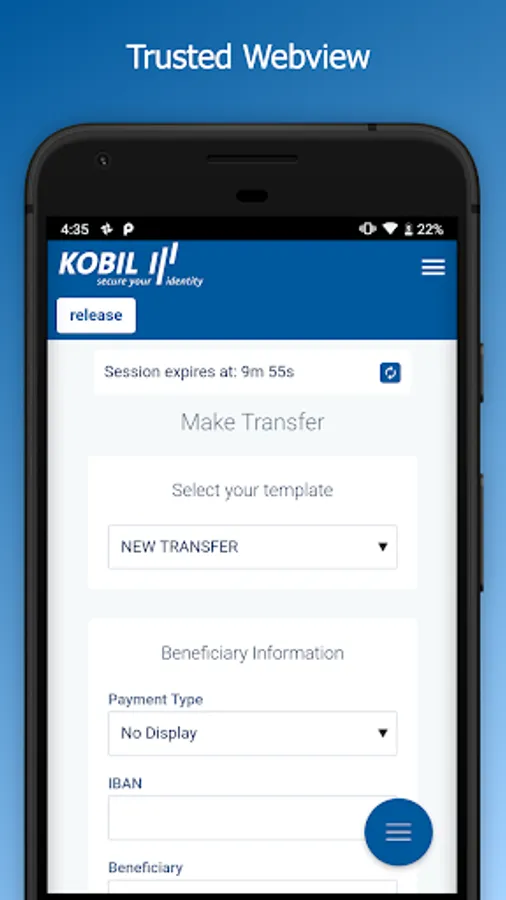 Visiting unknown websites always harbours the risk of installing malicious software on pcs or mobile end devices without noticing it. Here KOBIL’s Trusted Web View comes into play. With Trusted Webview (TWV) your output browser is being secured so that you or your customers can move around the internet without having to worry of becoming the victim of a cyber attack.