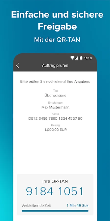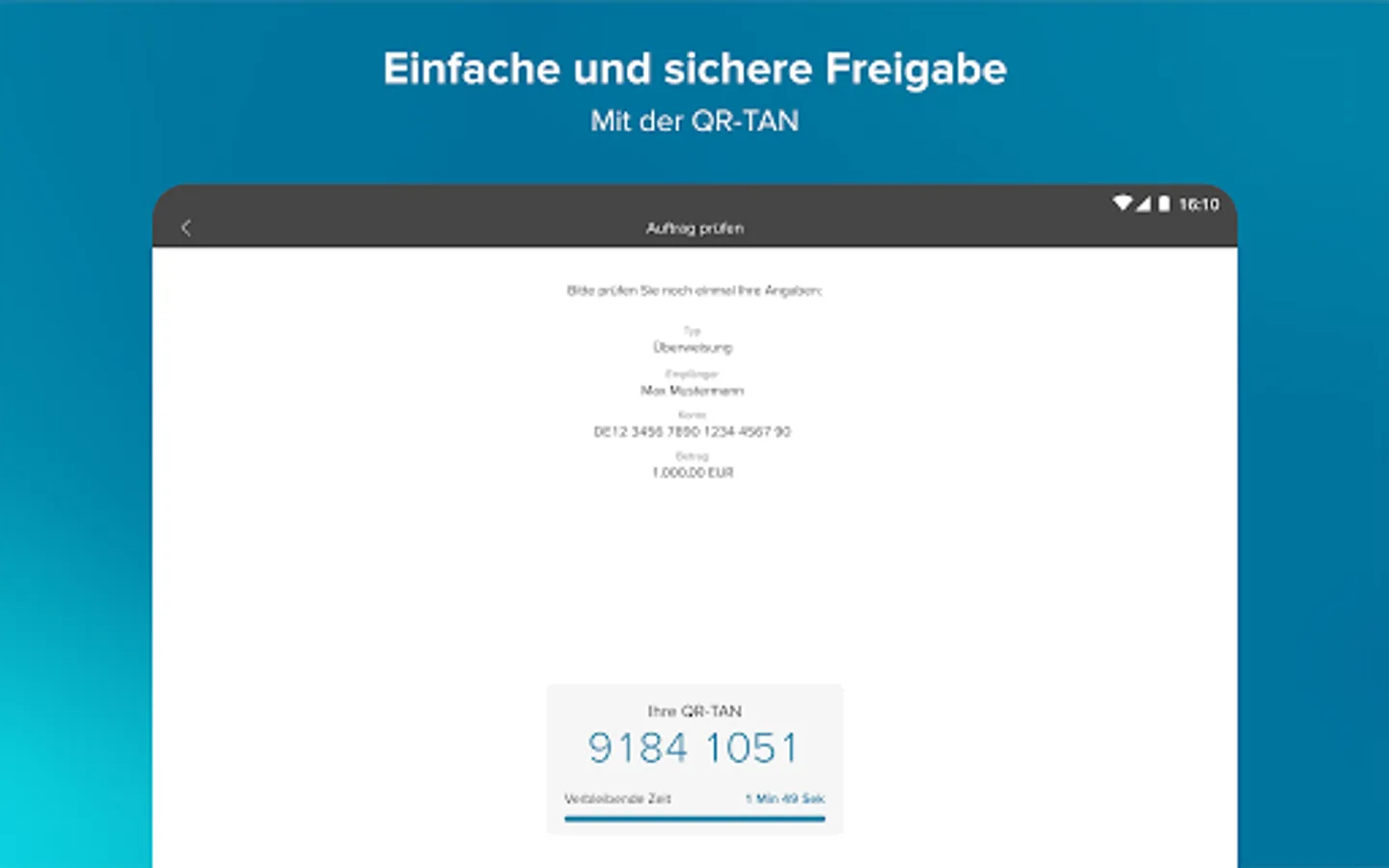 In order to activate the app, certain settings must be allowed when it is initially started. The permission to manage phone functions is required for identification and device binding and is a security feature of the app. Camera authorization is required to photograph QR codes in order to generate the required TAN. Storage authorization is required to store configuration data.