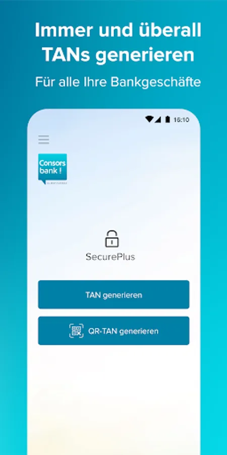 With our Consorsbank SecurePlus app, you can conveniently generate TANs and QR-TANs from home or on the go, and thanks to modern encryption you are always on the safe side.