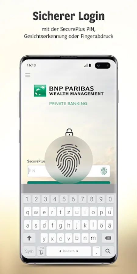 • In addition to secure login with the SecurePlus PIN, you can activate fingerprint or face recognition.